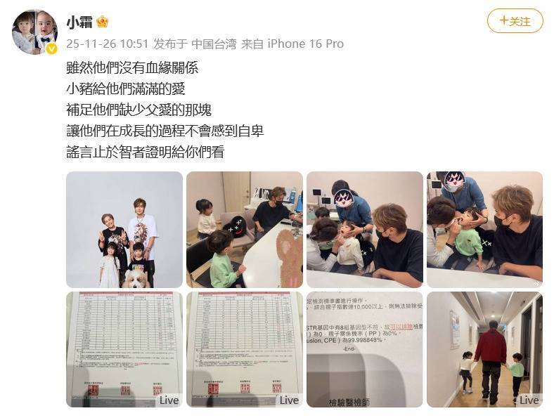 小霜晒出孩子们和罗志祥的相处日常,并公布亲子鉴定报告,力证并无血缘关系。
